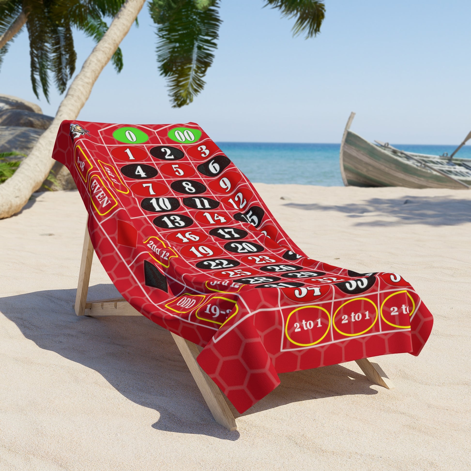 Take your luck with you to the beach or the pool! This Single Zero Roulette Layout towel will be a hit at your next pool party!